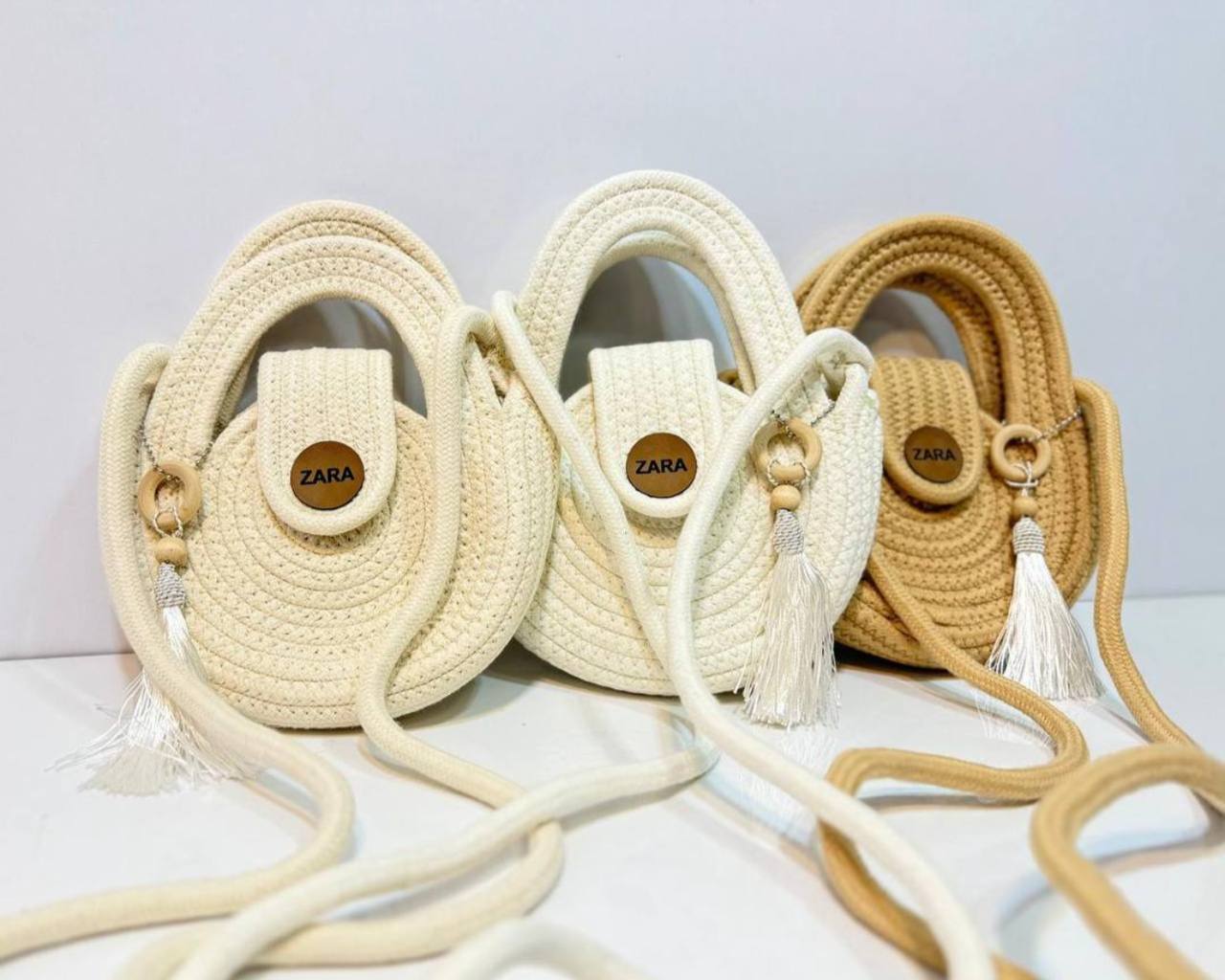 کیف کنفی زنانه مدل گرد ZARA – کیف بندی حصیری سبک و تابستانی