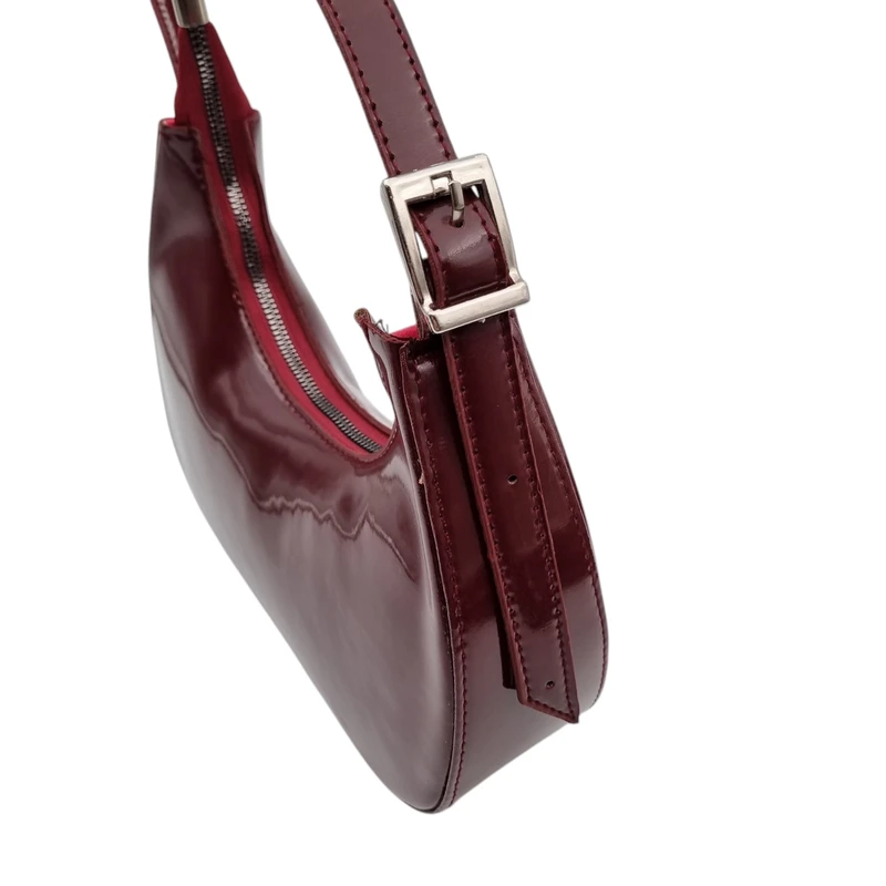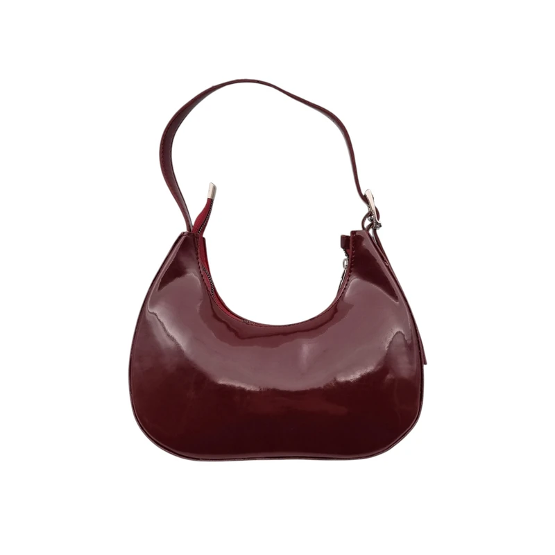 کیف هلال زنانه ورنی زرشکی | کیف رودوشی ترند دخترانه شیک